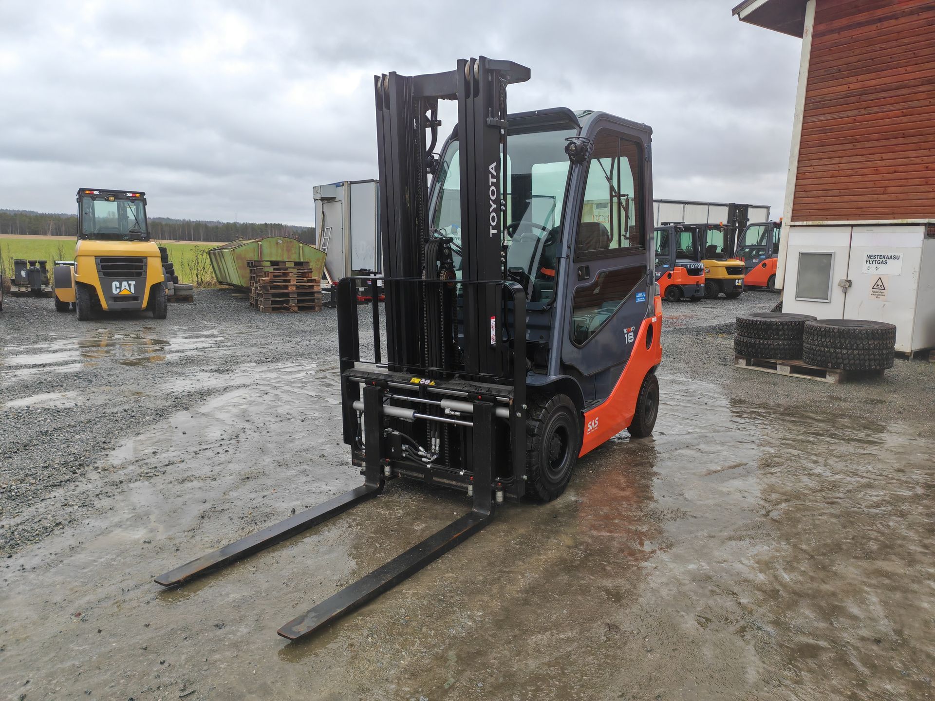 Pienillä tunneilla oleva hytillinen Toyotan dieseltrukki.